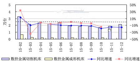 2015年我国数控机床产量及增速